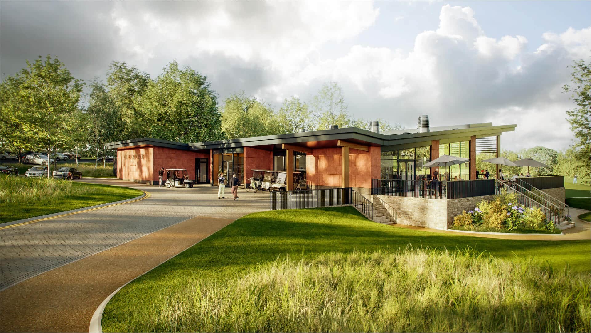 "Our aim has been to design a building that fits more naturally into its setting,” Cassell said. “It’s a timber, red sandstone, and glazed building that complements the existing buildings at Allerton Manor whilst providing a modern high-quality clubhouse facility."